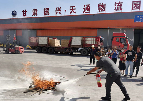 為積極響應(yīng)全國(guó)安全生產(chǎn)月“消除事故隱患 筑牢安全防線”主題,2020年5月21日,振興集團(tuán)安委會(huì)聯(lián)合億安消防培訓(xùn)中心組織甘肅振興?天通物流園商戶開展了消防安全演練活動(dòng)。